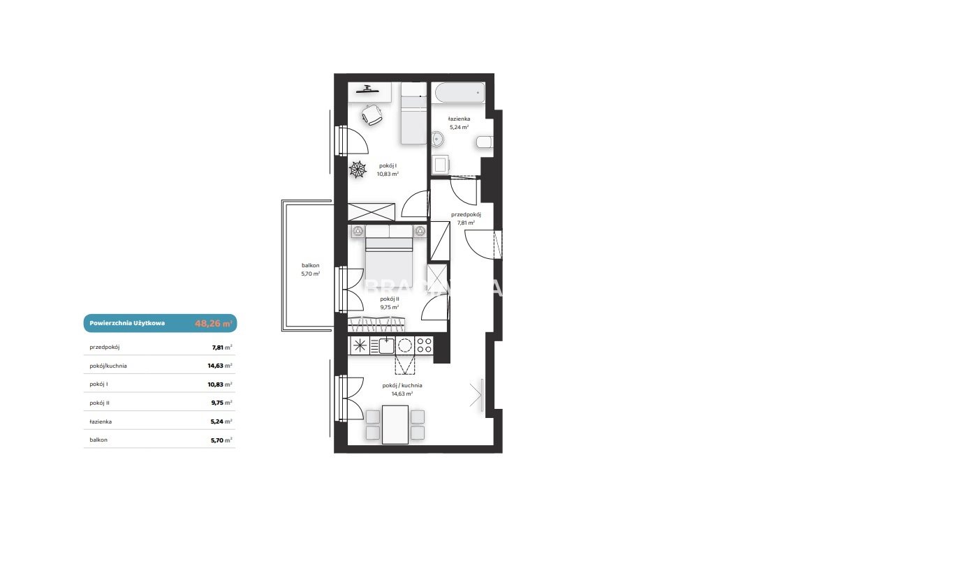 | Pow. użytkowa: | 48.26 m2 |