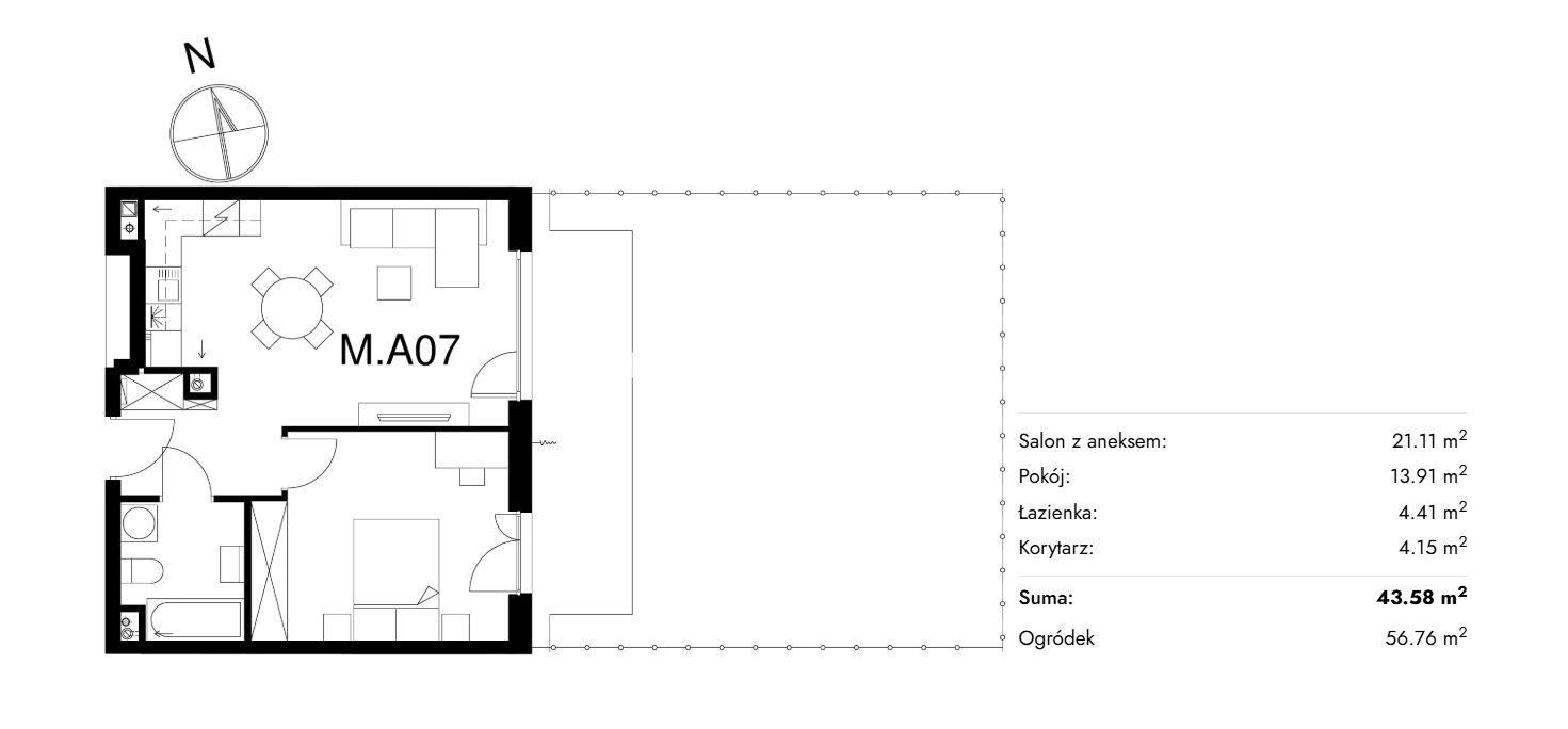 Każde mieszkanie posiada balkon, taras lub prywatny ogródek , zapewniając dodatkową przestrzeń do relaksu i odpoczynku.