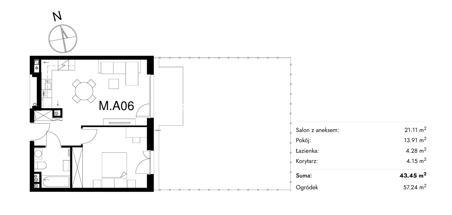 Każde mieszkanie posiada balkon, taras lub prywatny ogródek , zapewniając dodatkową przestrzeń do relaksu i odpoczynku.