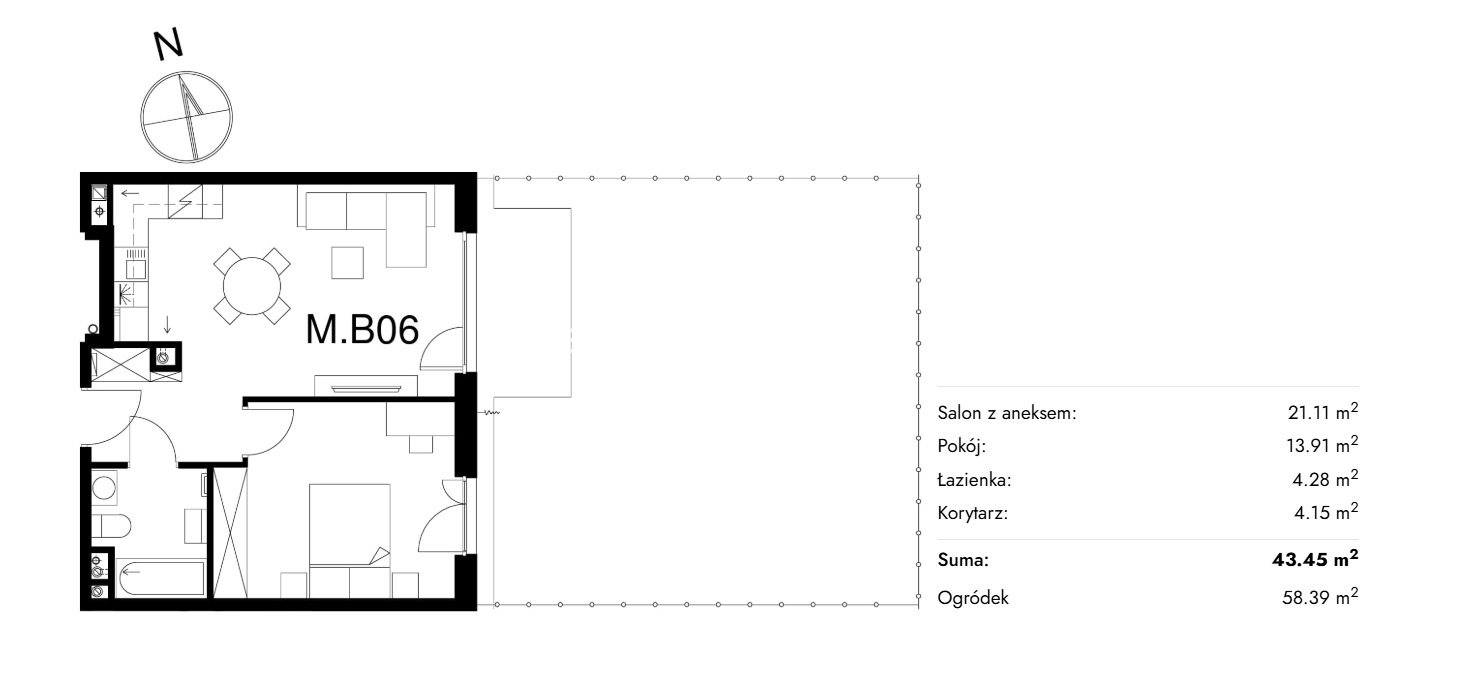 | Pow. użytkowa: | 43.45 m2 |