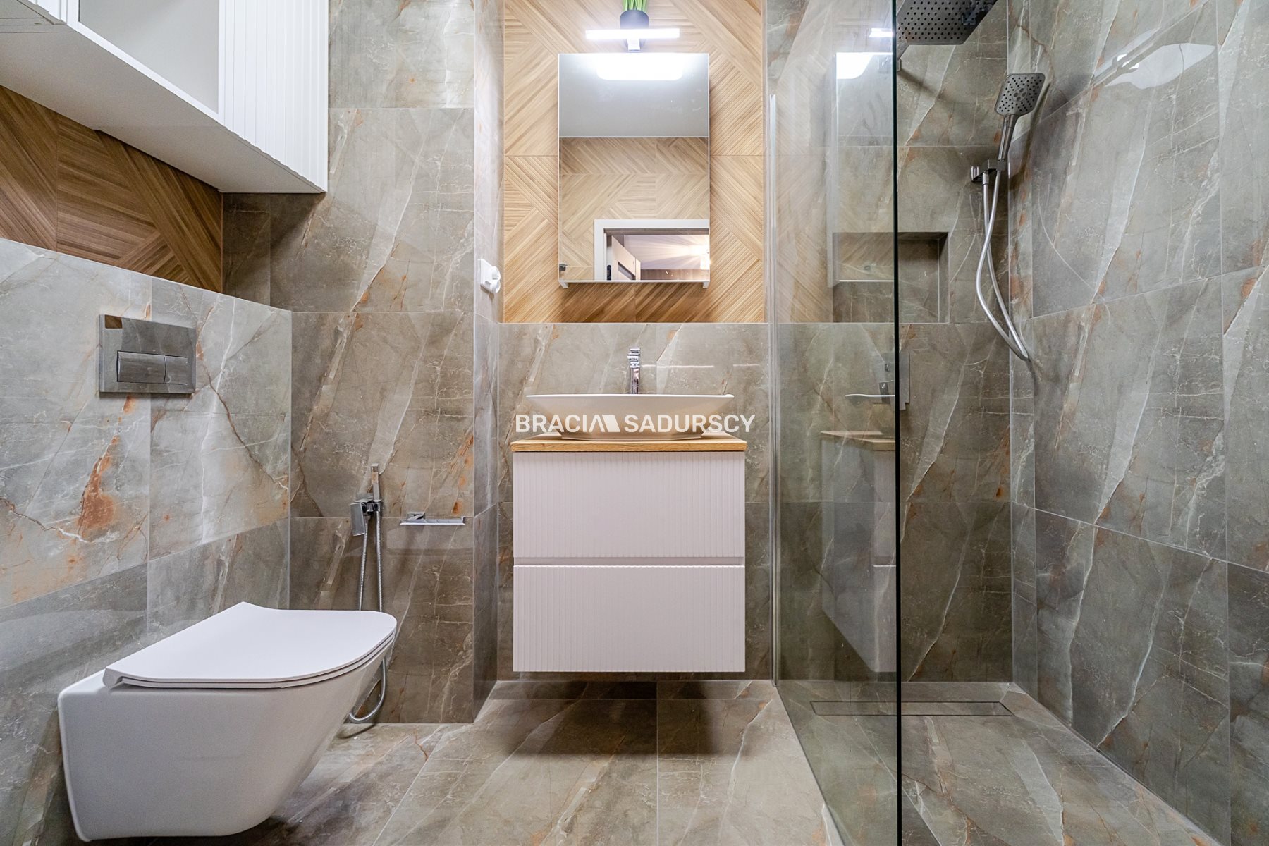 Mieszkanie jest w pełni wyposażone i gotowe do zamieszkania - właściciel zadbał o materiały dobrej jakości i zabudowy na wymiar, aby optymalnie wykorzystać dostępną przestrzeń. Do naszej dyspozycji na miejscu są nowe sprzęty AGD takie jak pralka, zmywarka 45cm, piekarnik, płyta indukcyjna, lodówko-zamrażarka czy okap. Łazienka została wyposażona w kabinę walk-in z deszczownicą oraz słuchawką prysznicową, toaletę z podręczną słuchawką do podmywania, umywalkę z lustrem i szafkami, które ułatwią codzienne zagospodarowanie. W sypialni znajdziemy łoże małżeńskie o wymiarach 200x160cm , oraz optymalnych gabarytów szafę z lustrem. Ściany i podłogi zostały wykończone materiałami o wzmocnionej odporności, takie jak panele klasy 5tej , czy farby zmywalne firmy Flugger , co pozwoli nam na łatwiejsze utrzymanie czystości w mieszkaniu.
