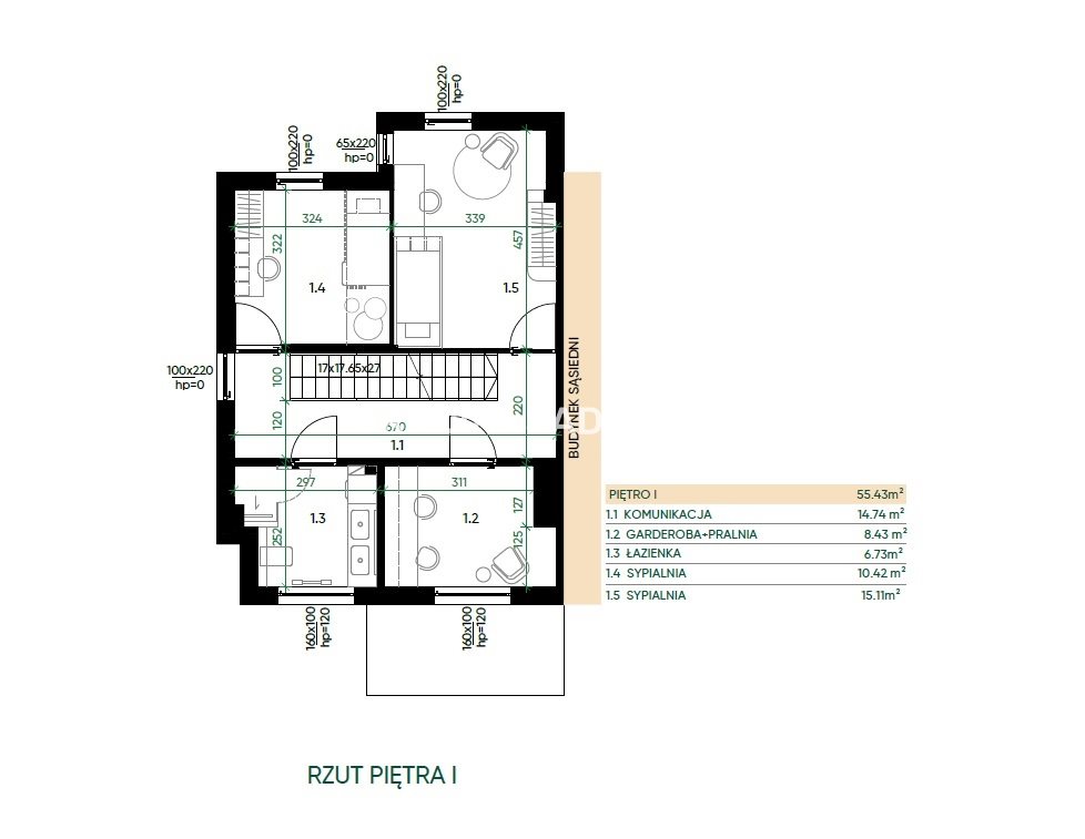 14 przestronnych domów w zabudowie szeregowej o powierzchni ok. 139 m² .