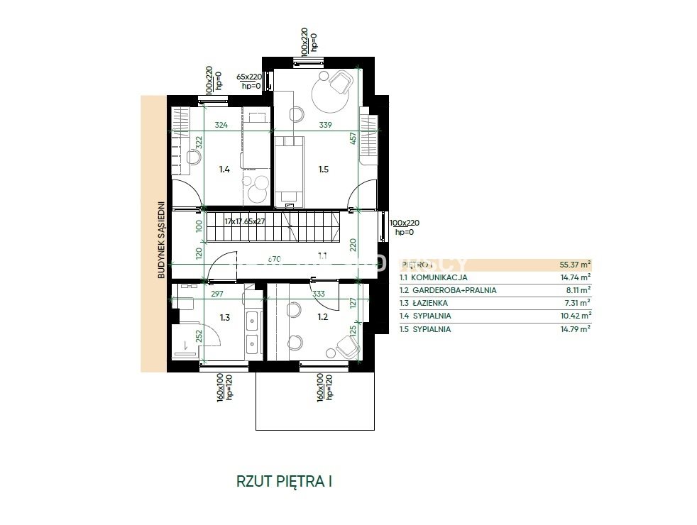 14 przestronnych domów w zabudowie szeregowej o powierzchni ok. 139 m² .