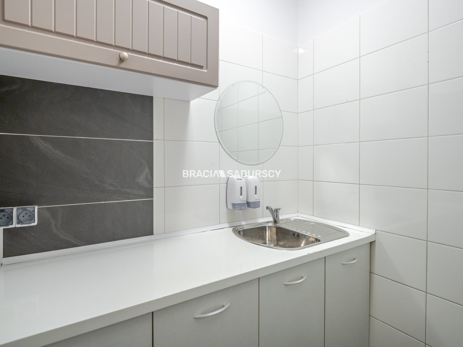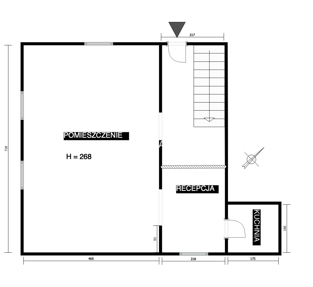 Na parterze recepcja, pomieszczenie biurowe plus pomieszczenie socjalne.