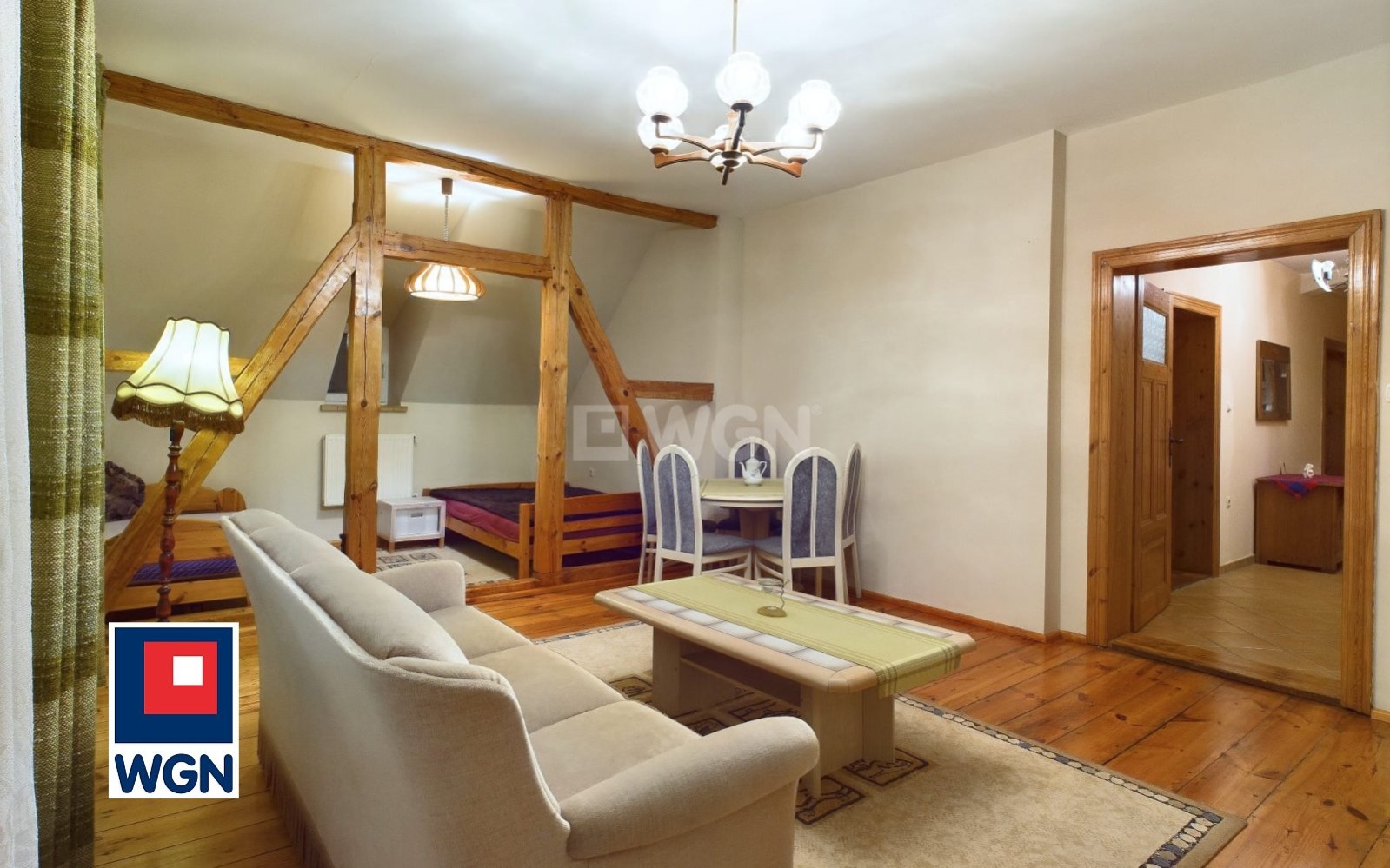 Głównym atutem nieruchomości jest jego wygląd, przestrzeń i klimat jaki dają przestronne pomieszczenia