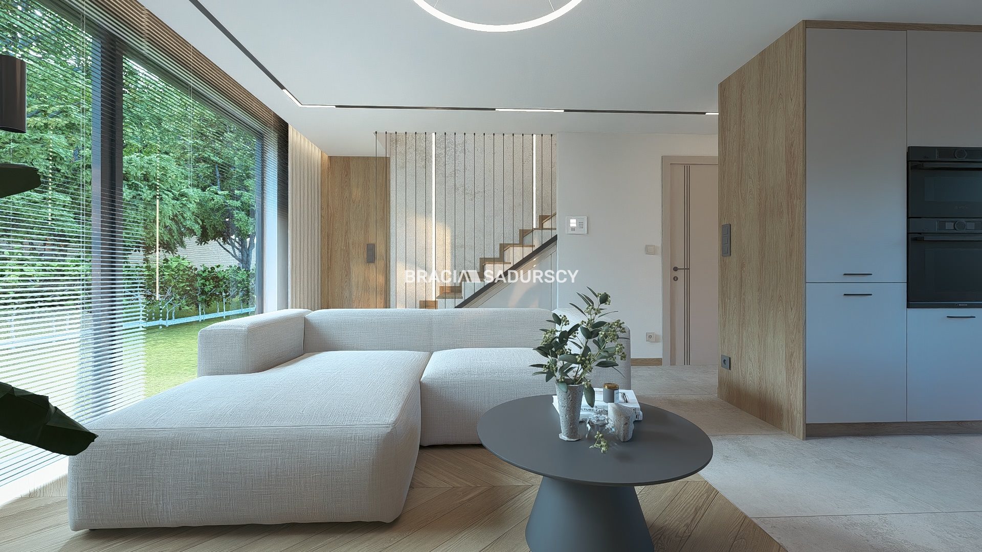 Na parterze znajduje się jasna strefa dzienna - salon z aneksem kuchennym, łazienka oraz przedsionek.