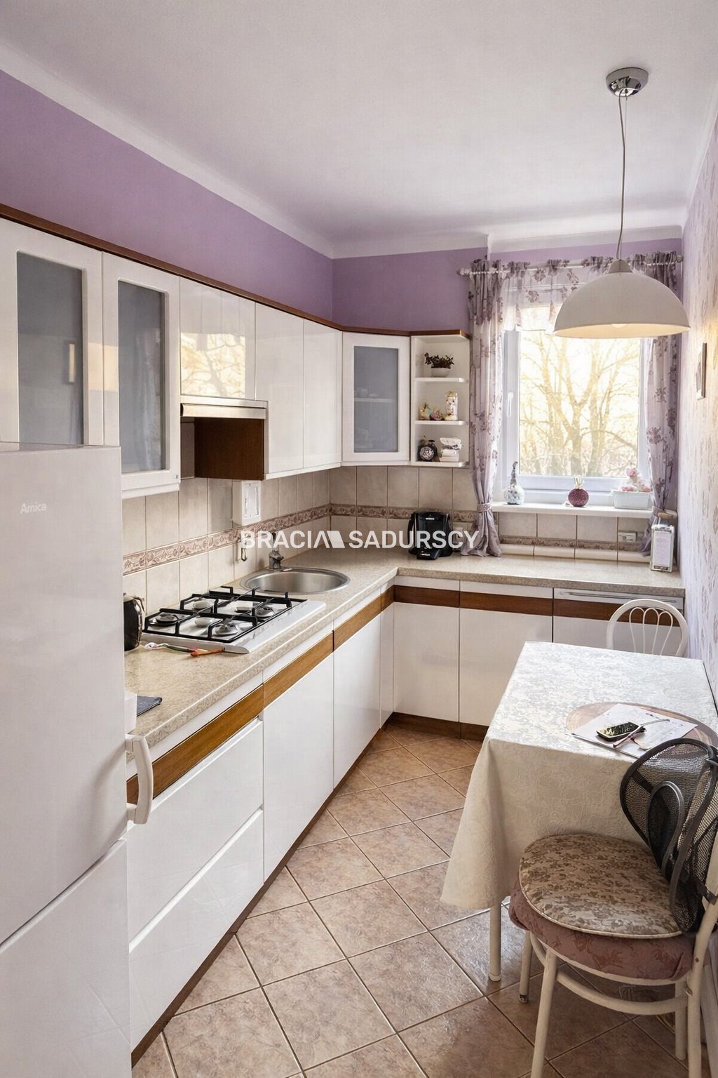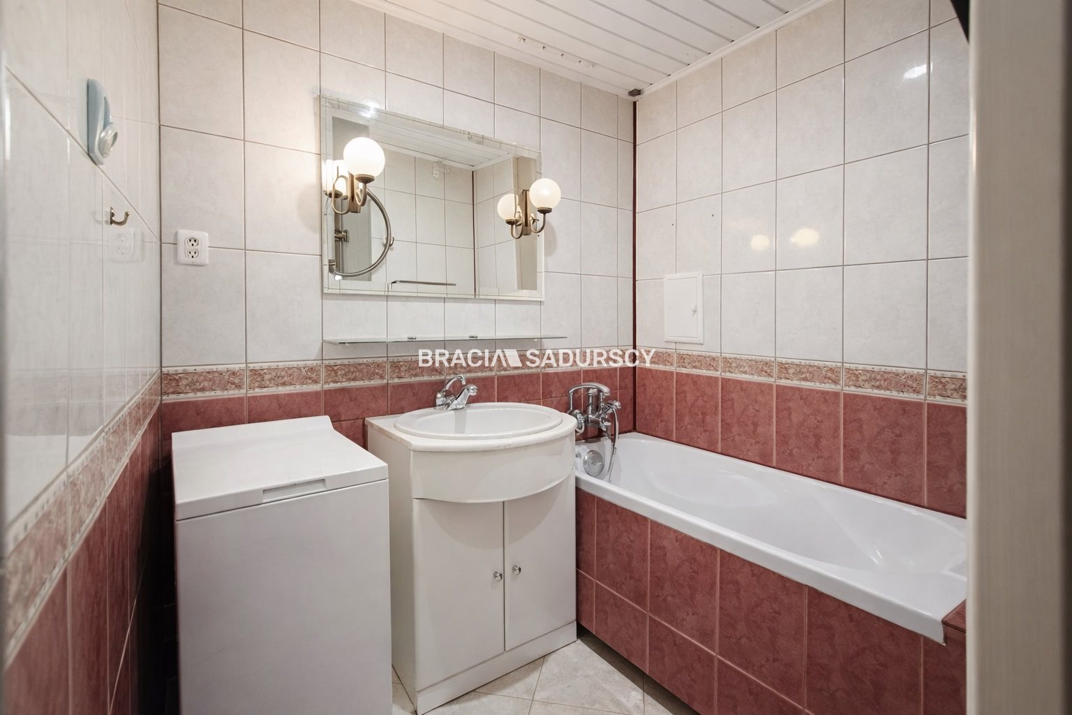 Na podłogach położono w zależności od pomieszczenia: parkiet w doskonałym stanie, płytki lub wykładzina PCV. Kuchnia ma ładne nowe meble, jest w pełni wyposażona w nowoczesne sprzęty.