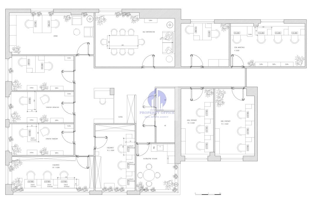 Biuro zostało zaaranżowane w układzie gabinetowym:
