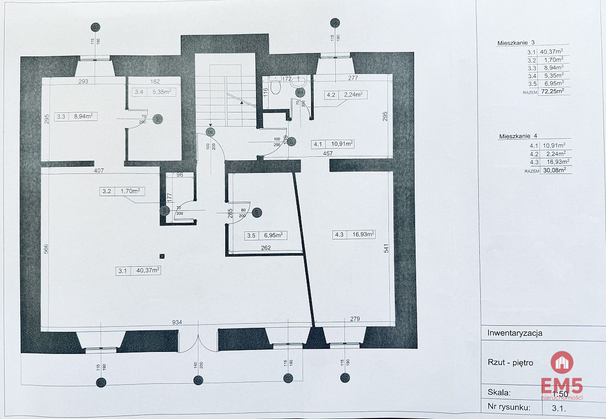 -Mieszkanie o powierzchni 72,25 m2, składające się z dwóch pokoi oraz łazienki