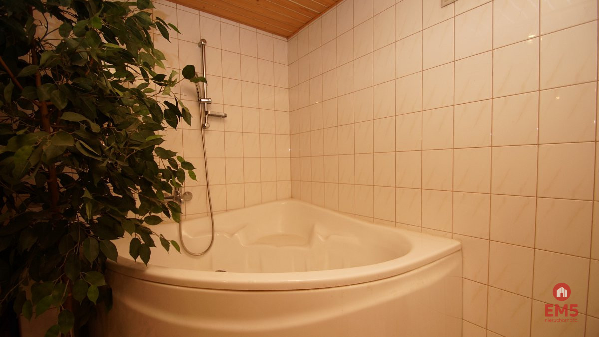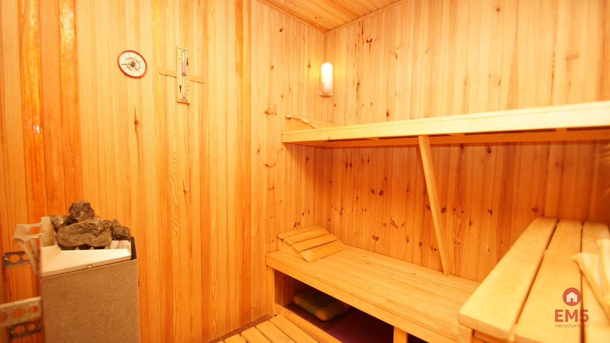 - Piwnica: sauna fińska, przestronna część techniczna z pralką, dużą wanną, palnikiem gazowym, kotłownia, pomieszczenia do majsterkowania, spiżarnia.