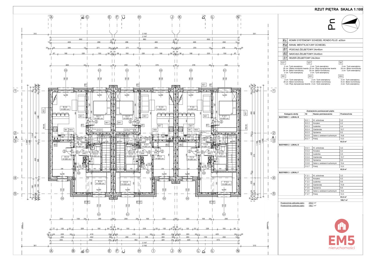 Mieszkania o powierzchni od 55 m2 do 64 m2 składają się z: