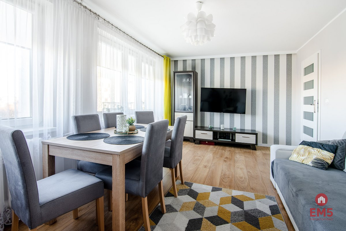 Wnętrze utrzymane jest w bardzo dobrym standardzie - zadbane, estetyczne i gotowe do wprowadzenia się. Przemyślany, funkcjonalny układ pomieszczeń sprawia, że mieszkanie wydaje się większe niż wskazuje metraż.