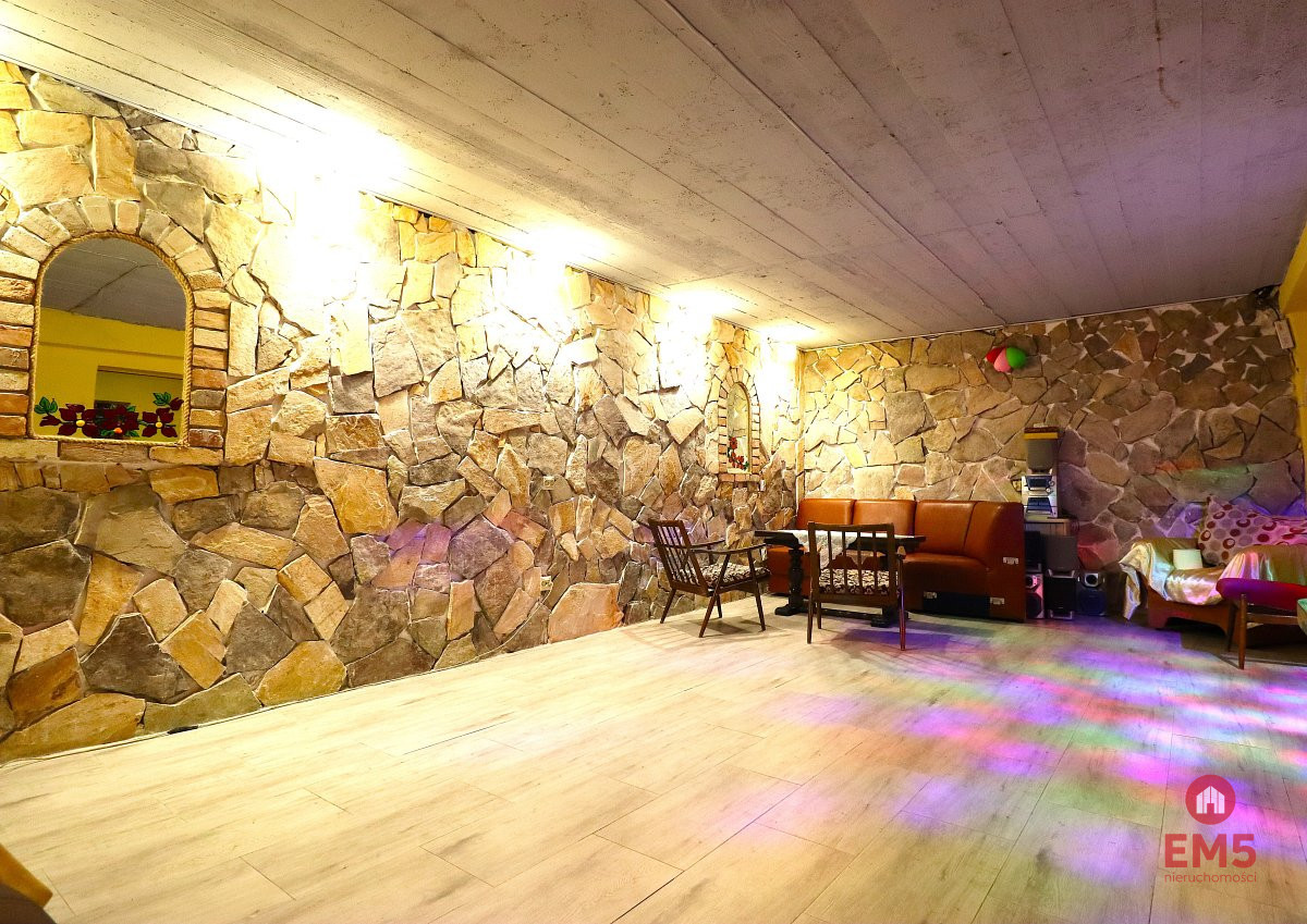 Dla kogo? Dla Ciebie, jeśli marzysz o własnej oazie, domu wakacyjnym, klimatycznym pensjonacie albo miejscu, gdzie można oddychać pełną piersią i... wreszcie słyszeć własne myśli. W piwnicy znajduje się sala biesiadna, oraz 2 pomieszczenia do zaadoptowania np. sauna, jacuzzi, siłownia - jak, kto woli.