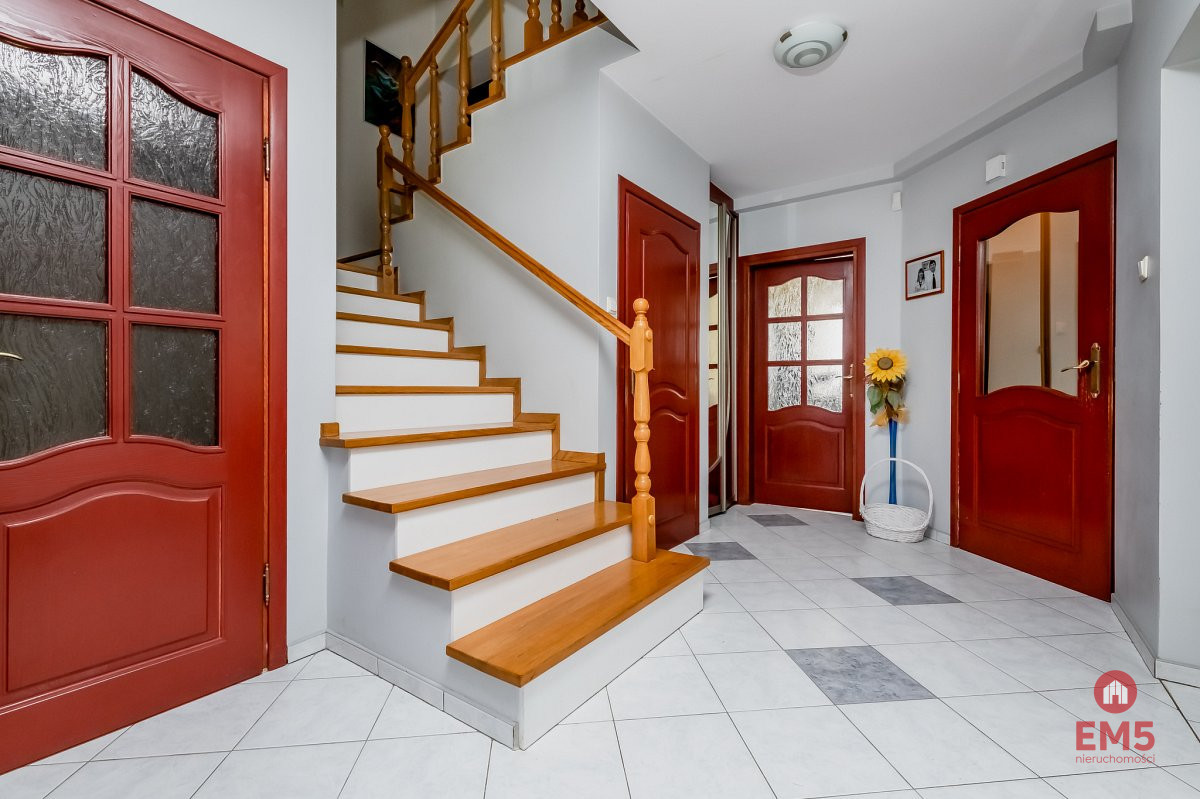 Dom wybudowany w 2002r. na dużej działce z lasem, cała posiadłość ma powierzchnię 2534m2. Dom jest zadbany i gotowy do wprowadzenia, posiada poddasze użytkowe i garaż w bryle budynku. Przemyślana architektura budynku zapewnia funkcjonalność i energooszczędność. Nieregularna lecz harmonijna bryła z jasnymi tynkami połączona z dachem wielospadowym z czerwonej dachówki idealnie oddaje klimat podmiejskich domów z lat 2000-.