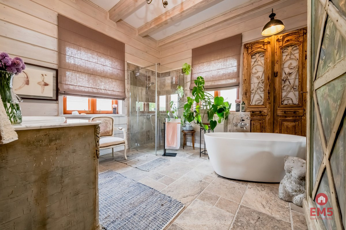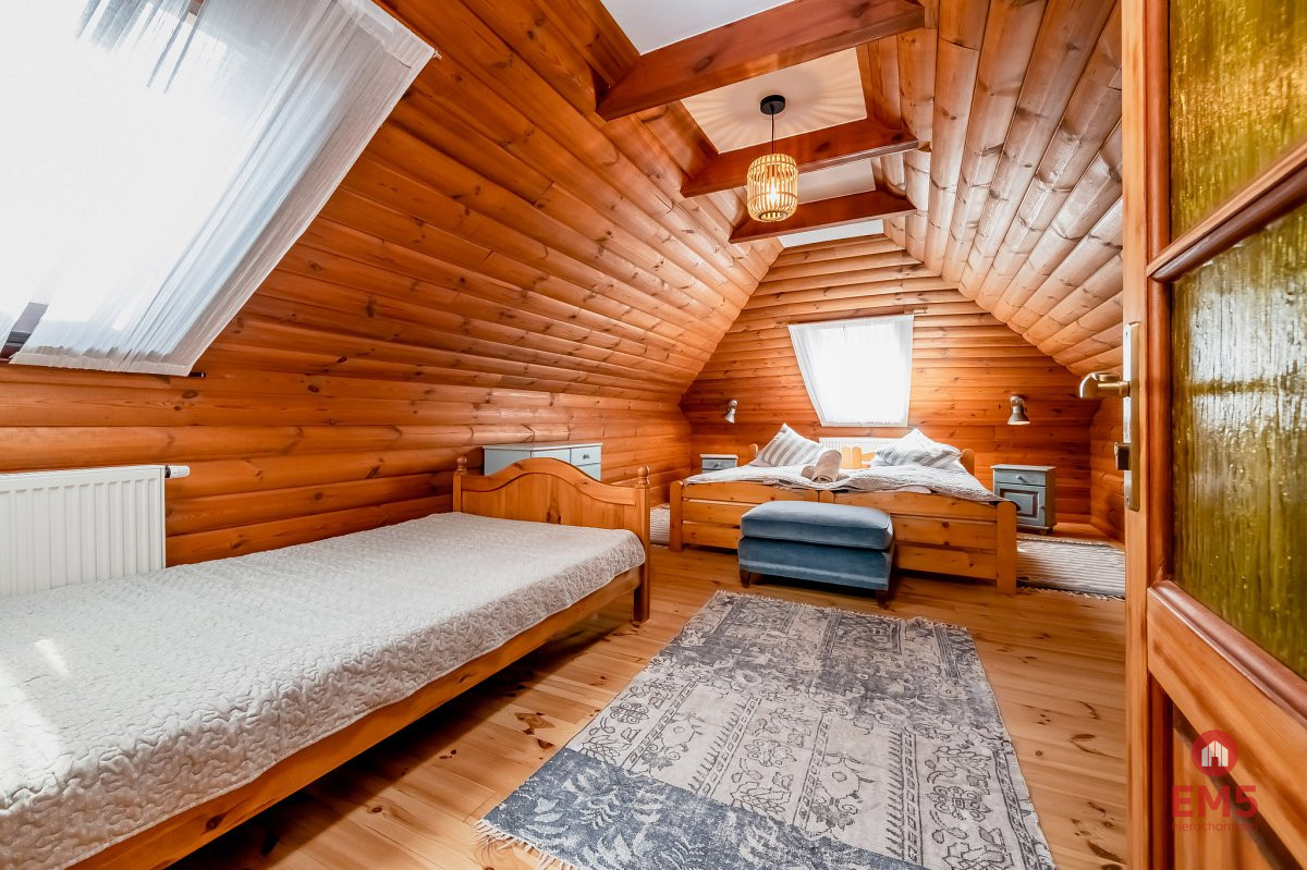 - Dwa domy drewniane: 120 m2 i 160 m2