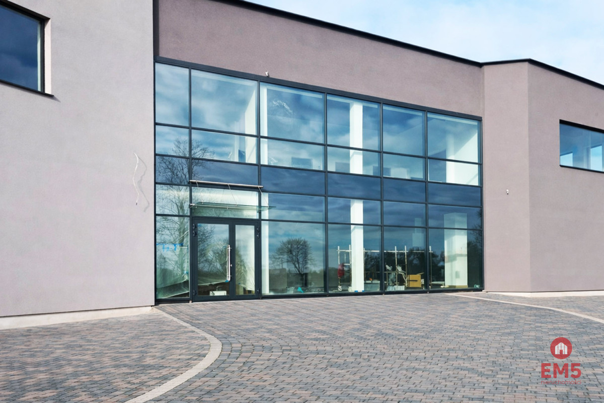 Łączna powierzchnia budynku do wynajęcia 1850 m, powierzchnia działki 3800 m2.