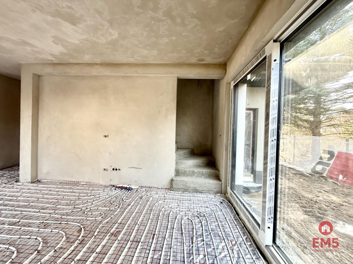 Dom oferowany jest w stanie deweloperskim, dzięki czemu przyszli właściciele mają możliwość wykończenia wnętrza według własnych potrzeb i gustu. Budynek został zaprojektowany w sposób bardzo funkcjonalny - na piętrze nie ma skosów, co sprawia, że wszystkie pomieszczenia są w pełni ustawne i łatwe do aranżacji.