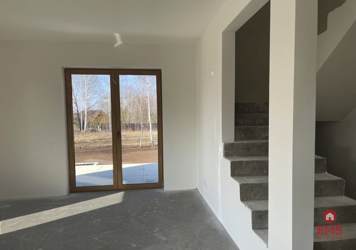 Dom o powierzchni 130 m² został zaprojektowany z myślą o funkcjonalności i wysokim standardzie technologicznym. Jest gotowy do wykończenia według własnej wizji.