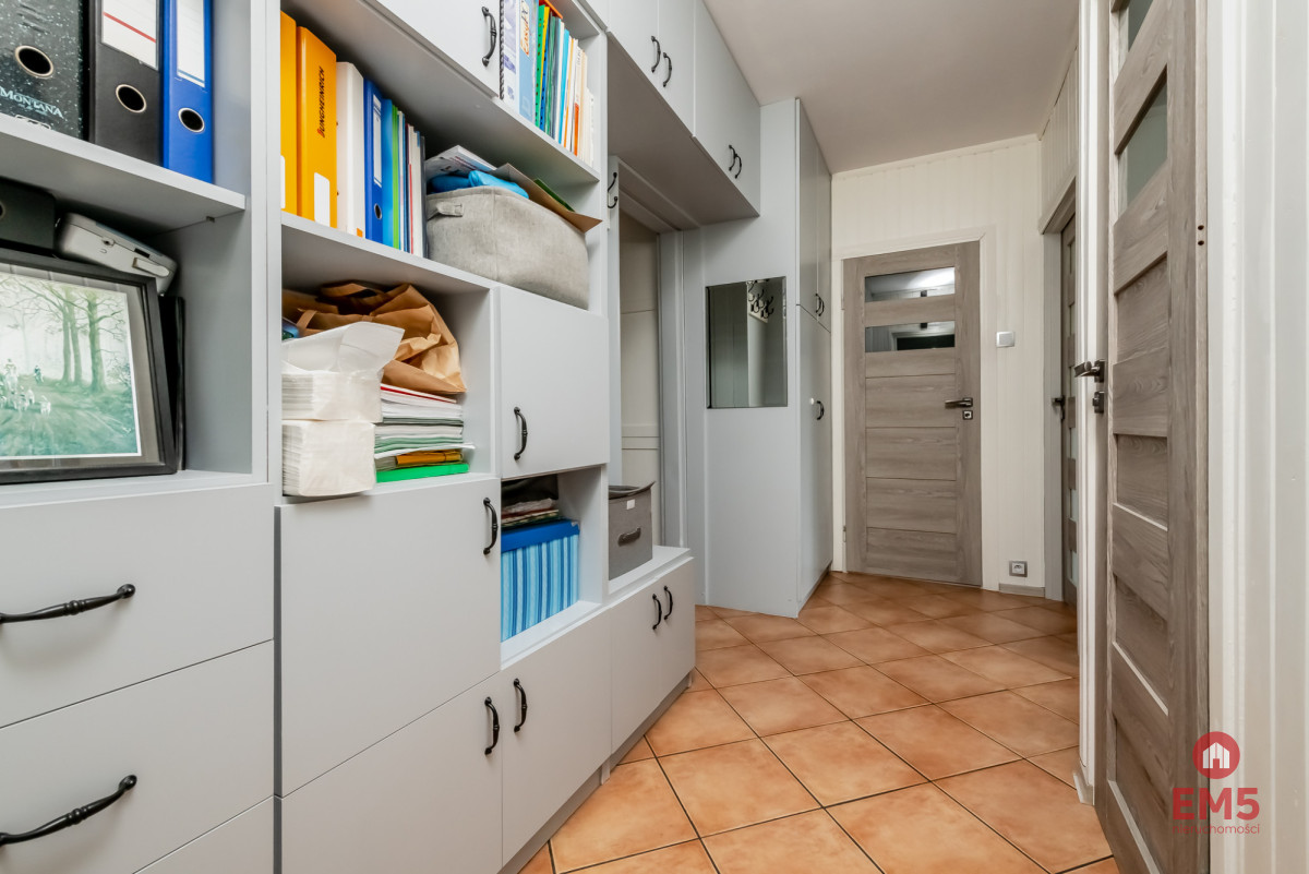- przedpokój z oknem przechodzący w korytarz z zabudową