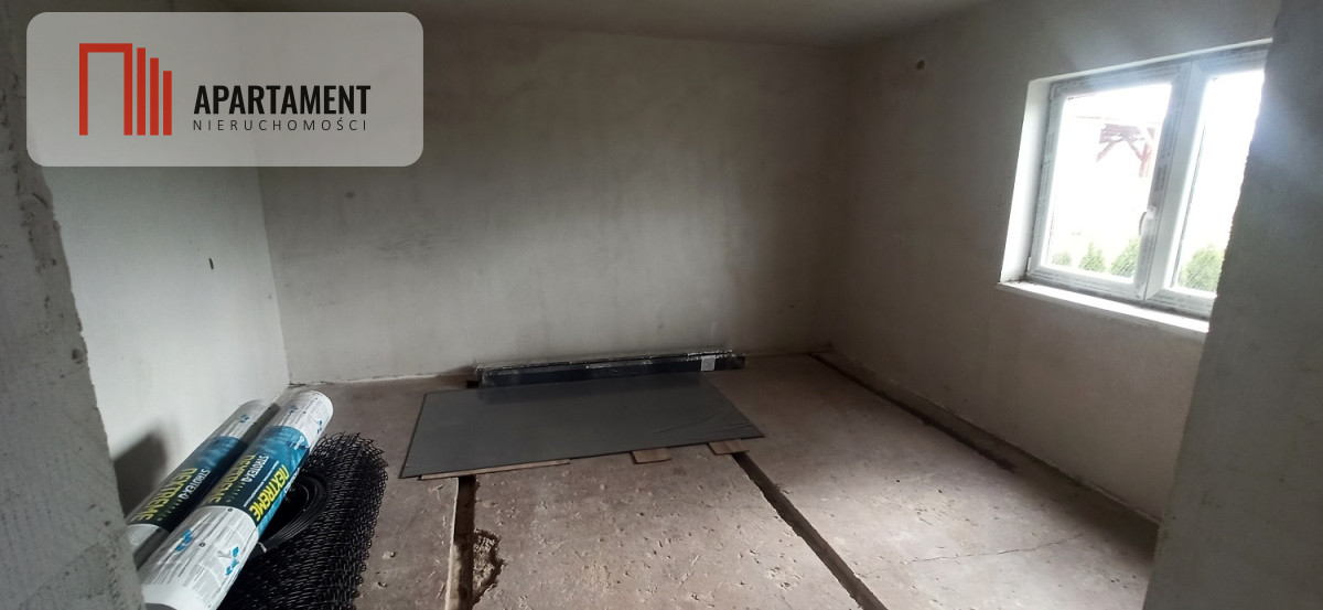 Dom w trakcje rozbudowy na działce o powierzchni 1829 m2. Możliwość wykorzystania aktualnego dziennika budowy, wszystkich wymaganych pozwoleń oraz projektu. Obecny budynek to powierzchna 49,12m2, podpiwniczony w 1/4 powierzchni budynku. Poddasze z osobnym wejściem z zewnątrz i tarasem. Ostatnio zostało dobudowane pomieszczenie na kotłownie i nowy komin. Możliwość rozbudowy do 93,85 m2 zgodnie z załączonym projektem. Media: woda, prąd, kanalizacja, światłowód. Całość ogrodzona. Dojazd drogą asfaltową. Cicha spokojna okolica niedaleko lasu.