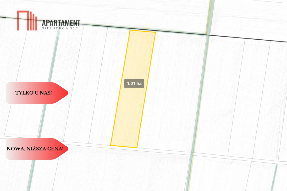 Działka 1 - 1,01 ha / Klasa ziemi 3B, 4A, 4B Wymiary: 49 x216 m