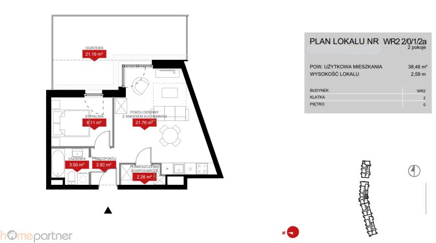 - ogródka o powierzchni 21,19 m.