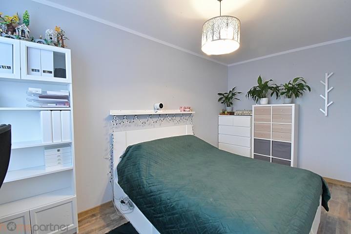 Panele podłogowe o wysokiej klasie ścieralności, klimatyzacja w salonie, rolety wewnętrzne tekstylne na wszystkich oknach, W kuchni oraz w garderobie pod płytkami zamontowano maty grzewcze elektryczne, w łazience podłoga też jest ciepła, ponieważ przechodzą tam rury grzewcze. Kuchnia wyposażona w płytę indukcyjną, piekarnik, zmywarka.