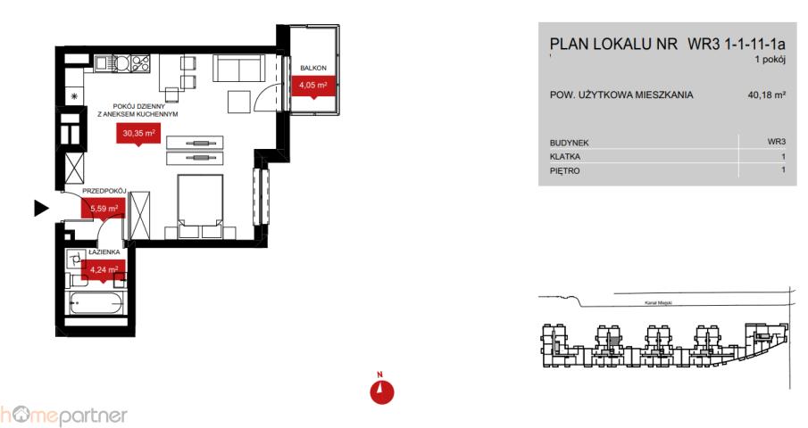 Do mieszkania przynależy balkon z widokiem na rzekę o powierzchni 4,05 m2