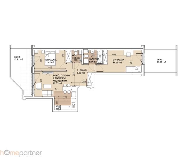 - sypialni nr 2 14,59 m2
