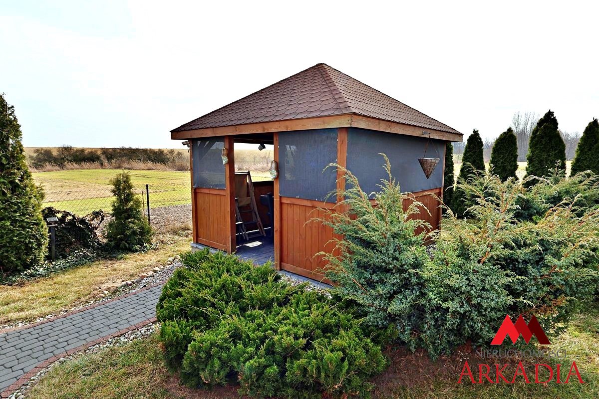 Nieruchomość ogrodzona, zdalnie otwierana brama ,wjazd wyłożony kostką brukową , na terenie posesji strefa relaksu , Altana z wytyczonym miejscem na grillowanie czy spędzanie czasu z Rodziną na świeżym powietrzu.