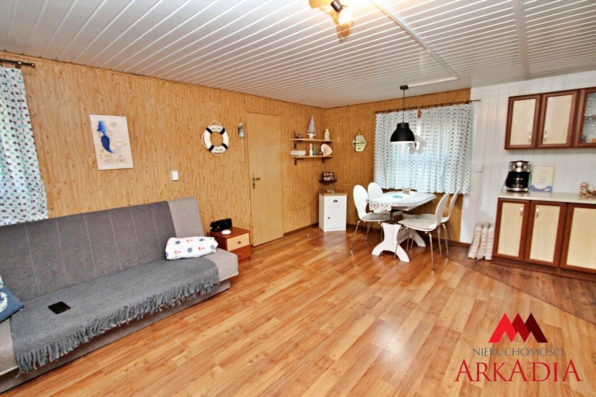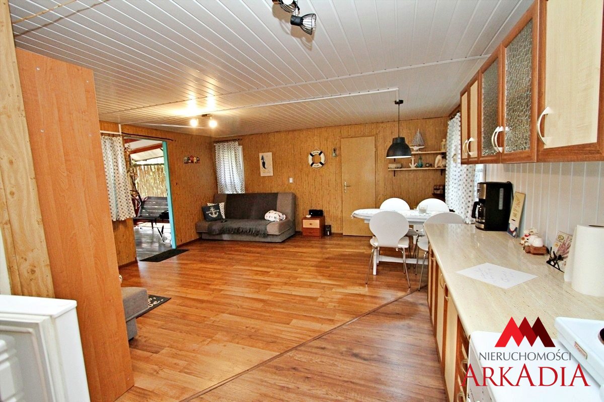 Domek został odświeżony 5 lat temu.W cenie zostają meble oraz 2 bujaczki.Podłoga wymaga wymiany.Nieruchomość znajduje się na końcu ogrodzonego terenu Eko-relaks.