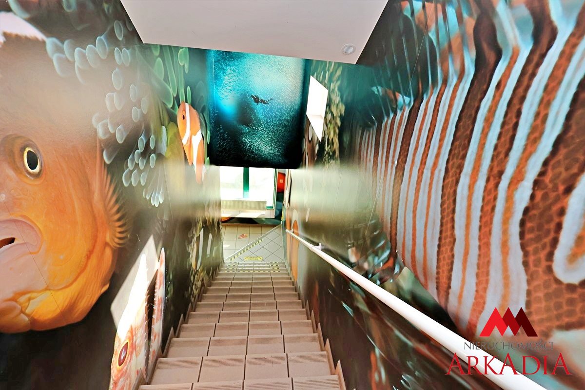 Lokal idealnie nadaje się na działalność typu siłownia, gatronomia czy sala zabaw dla dzieci. Na podłodze wyłożone kafle .Wejście do lokalu całe przeszklone .