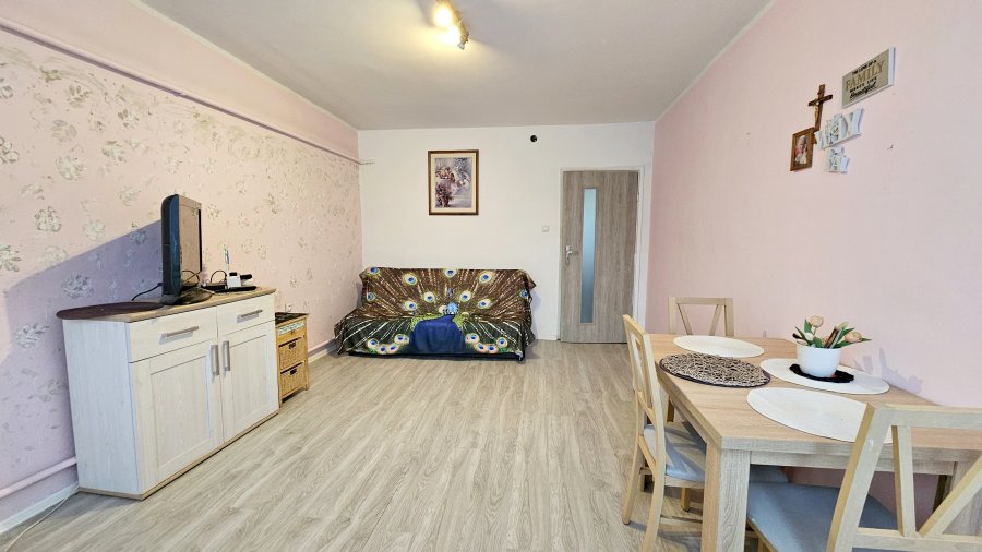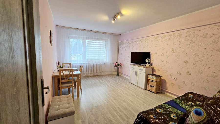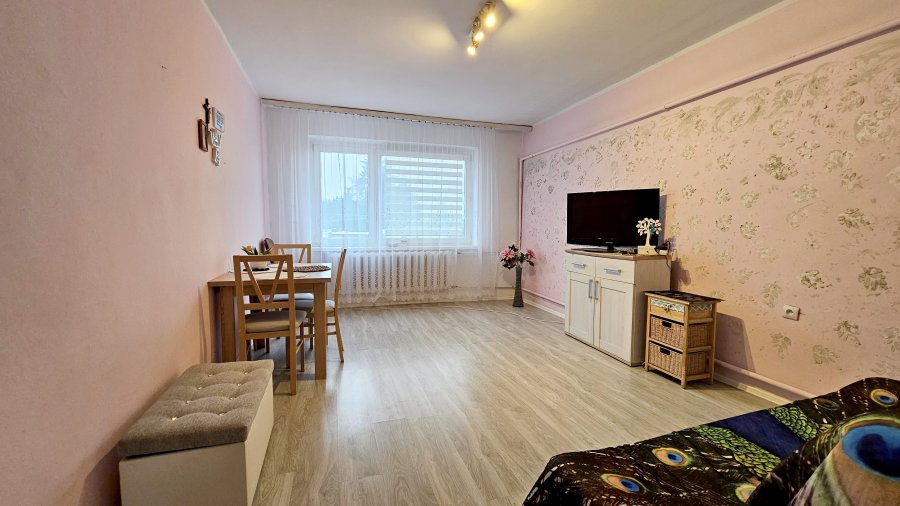 Polecamy Państwu na sprzedaż mieszkanie 2 pokojowe, bezczynszowe, położone I piętrze w budynku wielorodzinnym (bloku) o powierzchni użytkowej: 48,40 m2 w Suchaniu. Mieszkanie składa się z: 2 pokoi, kuchni, łazienki z WC oraz przedpokoju. W pokoju na podłodze: panele podłogowe; ściany: malowane. W kuchni na podłodze: terakota; ściany: struktura oraz pas glazury; wyposażenie: meble kuchenne, kuchenka gazowa z piekarnikiem, lodówko-zamrażarka, mikrofalówka. Łazienka z WC wykończona: glazurą i terakotą; wyposażenie: kabina prysznicowa, umywalka z szafką i lustrem, pralka oraz piec c.o. i zasobnik c.w. (bojler). W przedpokoju na podłodze: terakota; na ścianach: struktura. Ogrzewanie: piec c.o. oraz źródło c.w. zasobnik (bojler). Mieszkanie jest w pełni umeblowane i wyposażone. Mieszkanie bezczynszowe, zarządca WM. Z własnością lokalu związany jest udział wynoszący 31/1000 części w nieruchomości wspólnej i działce (piwnica i pomieszczenie gospodarcze - komórka). Ciekawa oferta dla Rodziny lub jako inwestycja pod wynajem (układ mieszkania 3-stronne rozkładowe). Polecamy i Zapraszamy na Prezentację.