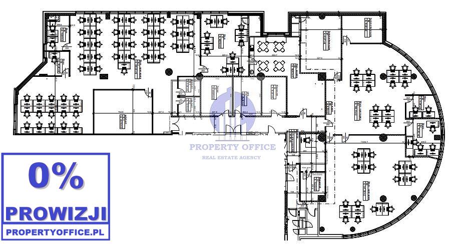 Powierzchnia w podziale mieszanym: open space + gabinety biurowe i pomieszczenia socjalbe..