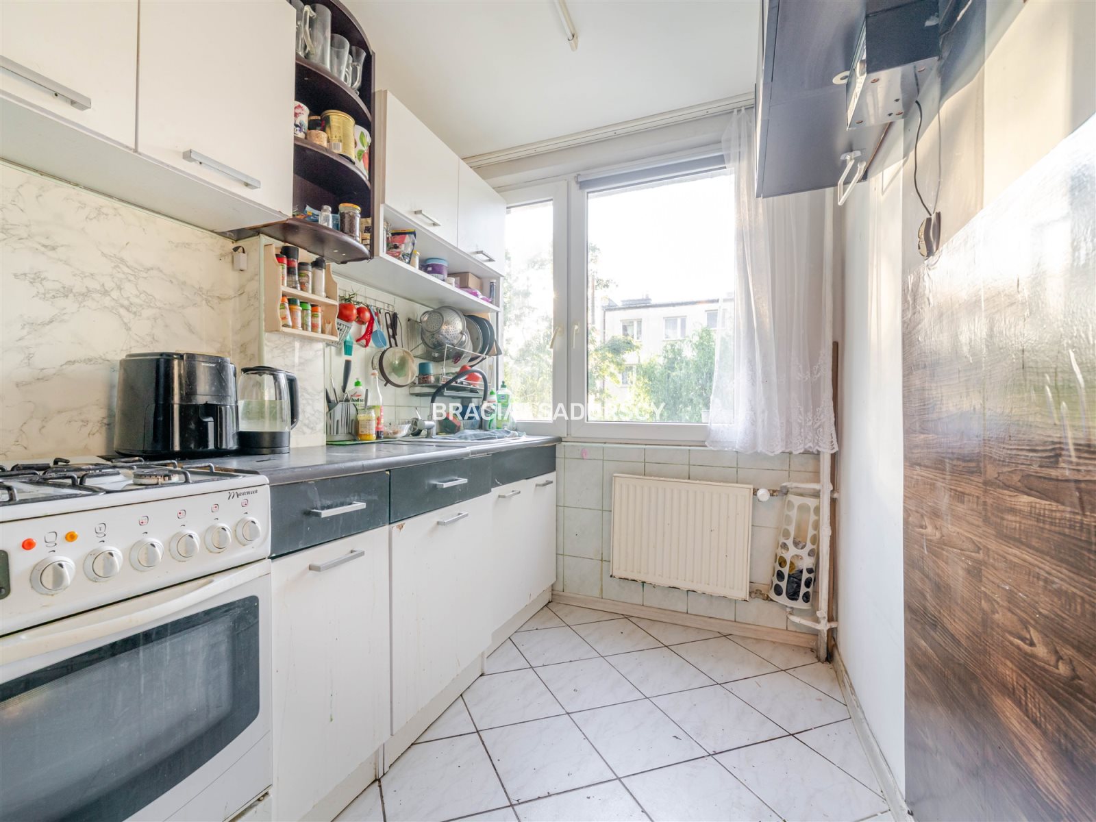 Mieszkanie ma funkcjonalny układ - składa się z dwóch niezależnych pokoi, osobnej, jasnej kuchni, łazienki z wanną i WC oraz przedpokoju. Z salonu prowadzi wyjście na niewielki balkon z widokiem na zieleń. Do mieszkania przynależy również spora piwnica (ok. 8 m²).