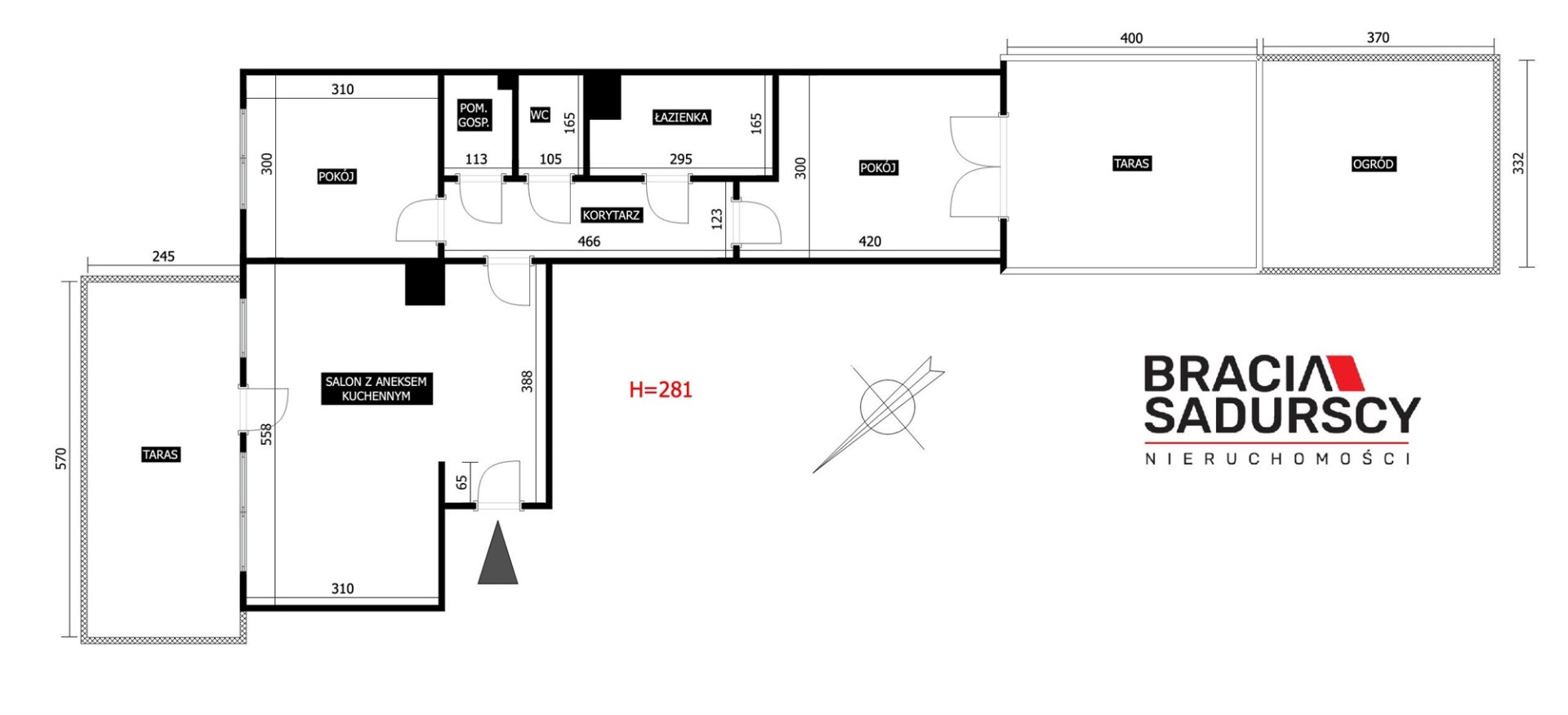 Mieszkanie jest dwustronne i posiada dwa duże tarasy - jeden o powierzchni 13,7 m², drugi 25,3 m², które stanowią doskonałe miejsce do wypoczynku na świeżym powietrzu. W skład mieszkania wchodzą salon z aneksem kuchennym, dwie sypialnie, garderoba, łazienka, WC oraz przedpokój z zabudową. Wnętrze zostało wykończone w wysokim standardzie z dbałością o jakość i funkcjonalność.