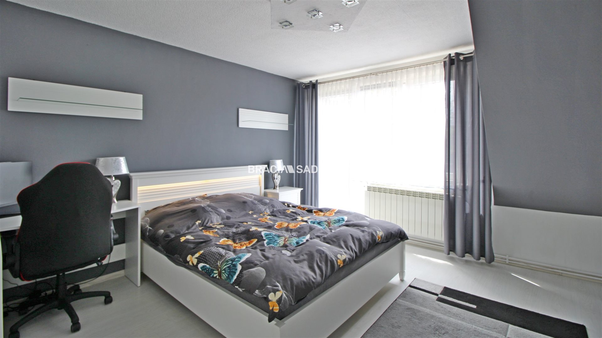 Na piętrze o pow. użytkowej 104,40 m2 wydzielono: salon z wyjściem na balkon, 2 pokoje, kuchnię, łazienkę, przedpokój oraz schowek.