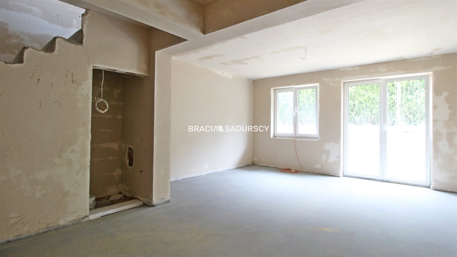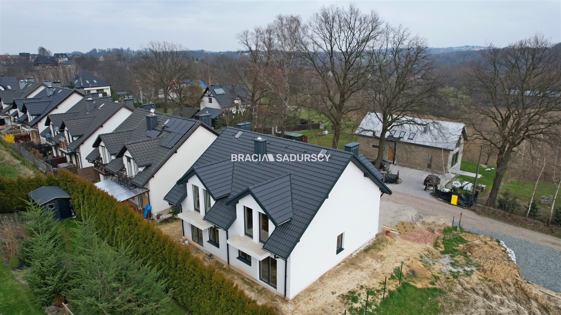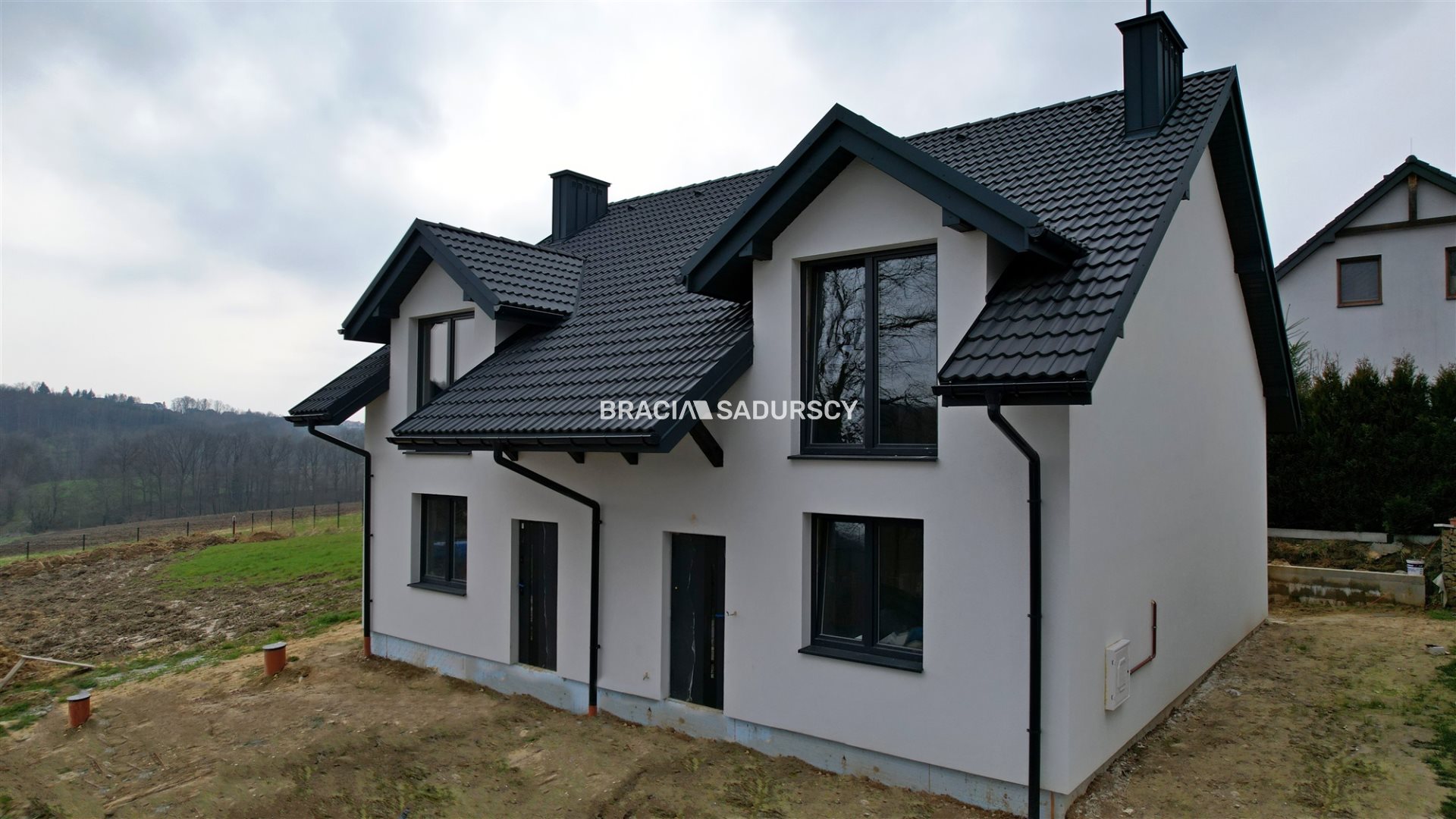 Konary, gm. Mogilany. Nowo wybudowany dom jednorodzinny, w zabudowie bliźniaczej o pow. użytkowej 96,30 m 2 , z działką o pow. 234 m 2 , w zacisznym miejscu.