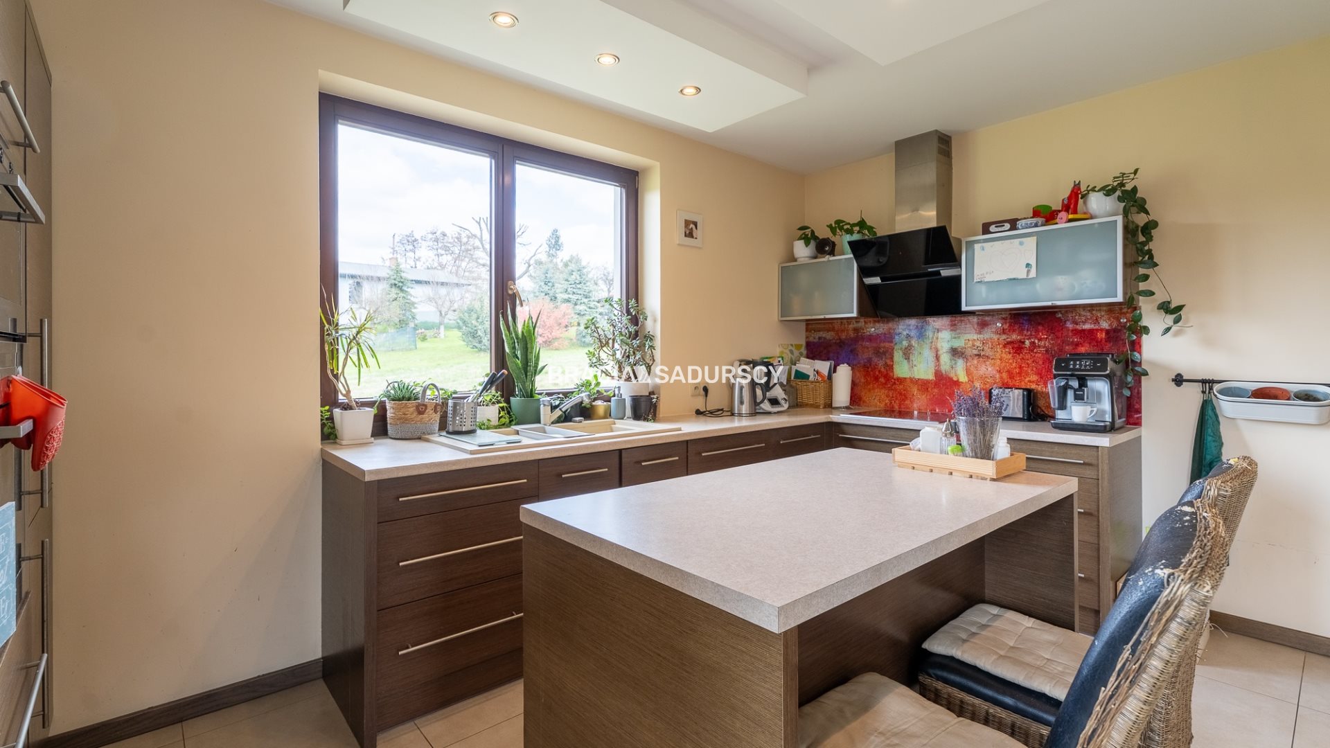 W piwnicy znajdują się pomieszczenia gospodarcze (pralnia, kotłownia), z bezpośrednim wyjściem do ogrodu. Dom jest bardzo dobrze doświetlony, a pomieszczenia są jasne dzięki oknom na wszystkie strony świata.