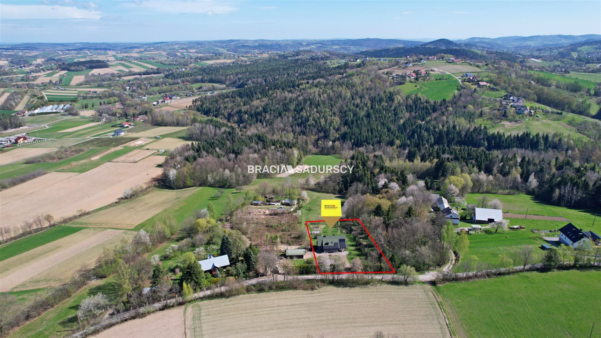 Działka położona jest w niezwykle spokojnej okolicy z atrakcyjnym widokiem na otaczające tereny zielone i pasma Beskidu Wyspowego i Makowskiego.