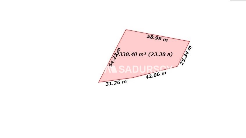 Działka budowlana o powierzchni 2300 m 2 w kształcie trapezu o wymiarach: 73x25x59x54 m. Działka położona na stoku o północnym nachyleniu, otoczona lasem, niezagospodarowana. Do działki prowadzi droga leśna będąca we władaniu gminy. W cenę działki wliczona jest działka leśna o powierzchni 400 m 2 .