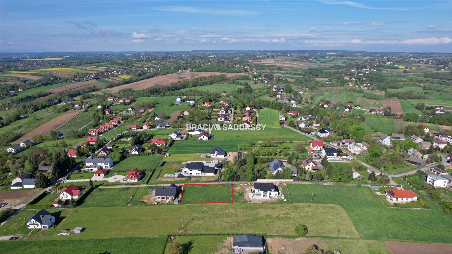 Działka znajduje się na południowym, świetnie nasłonecznionym stoku łagodnego wzniesienia. Teren zlokalizowany jest w cichej okolicy, z dala od głównej drogi co stwarza idealne warunki do odpoczynku. W najbliższej okolicy są nowo wybudowane rezydencje lub będące w budowie nowe domy, oraz pola niezabudowane. Na działce jest już zainstalowany przyłącz prądu , woda w drodze dojazdowej. Kanalizacji na ten moment brak. Zabudowa jednorodzinna bardzo luźna. Idealne miejsce na usadowienie wymarzonego domu jednorodzinnego.