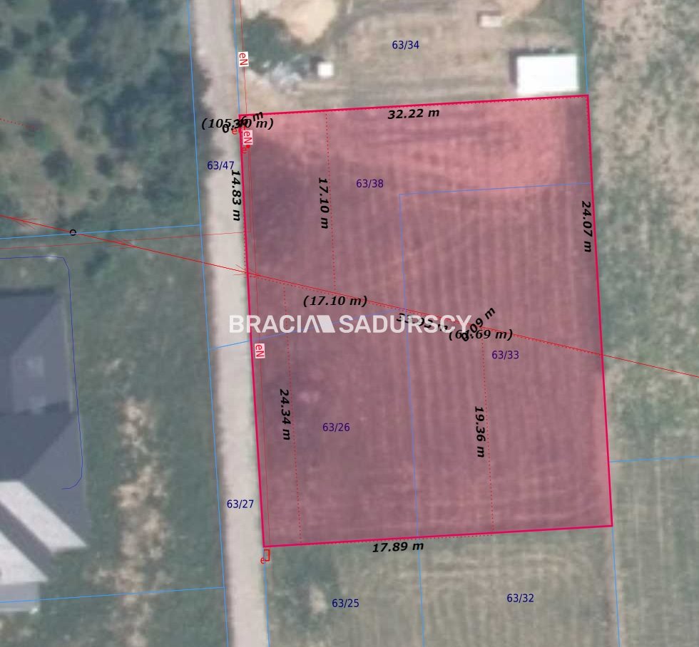 Ważne: W połowie przebiega przez działkę linia średniego napięcia. Rozmiar działki pozwala jednak bez problemu wybudować zgodnie z prawem dom wielkości do 170 m2 z zachowaniem wszelkich norm bezpieczeństwa.