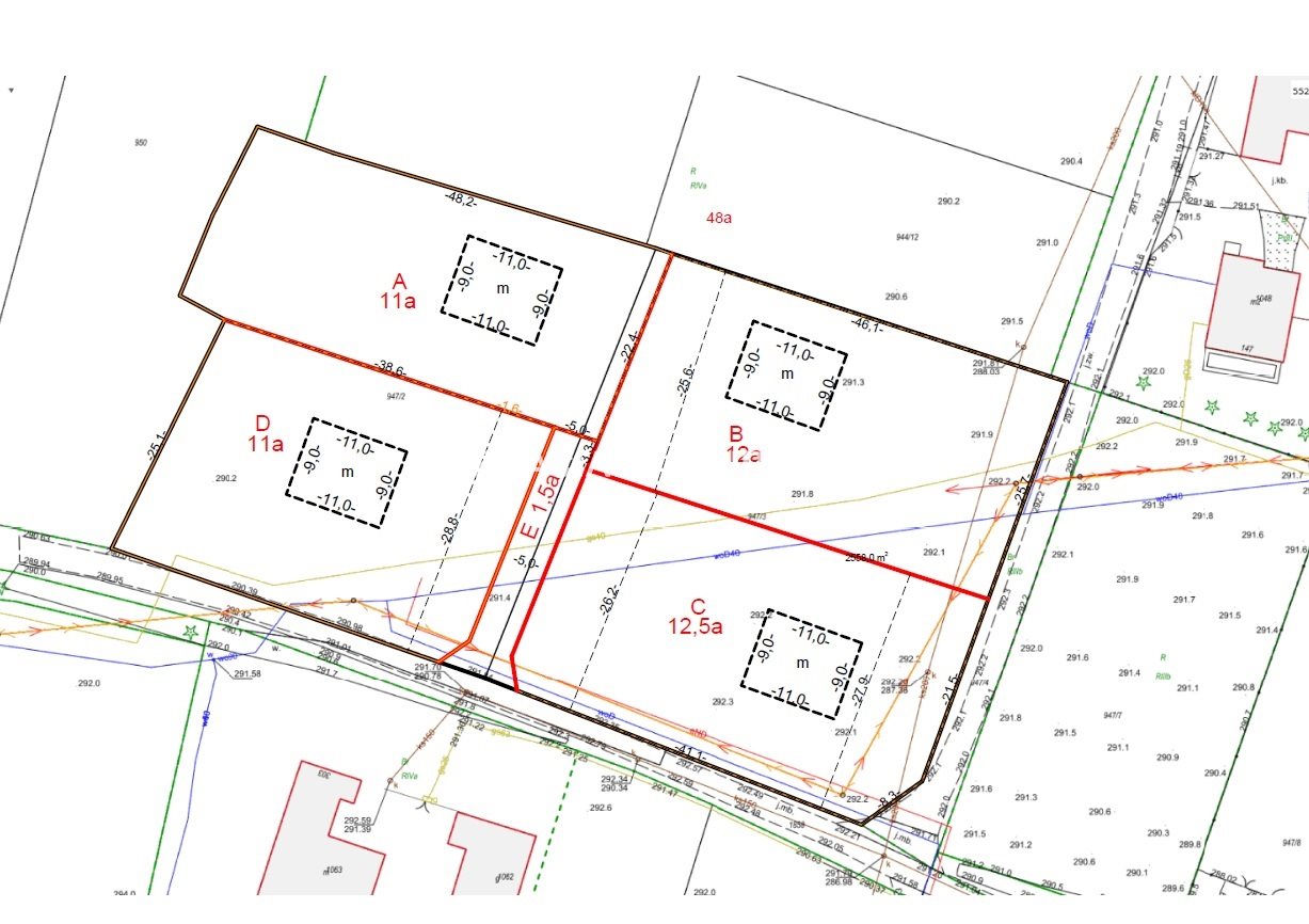 minimalna powierzchnia nowo wydzielanej działki wynosi: 800m2 ,