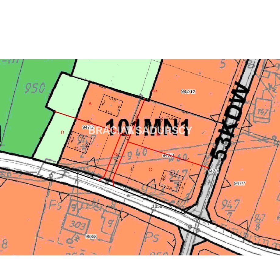 Zabudowa: Jednorodzinna, oznaczenie MPZP 101MN1, w małej części działka oznaczona w MPZP ZR1 (tereny zieleni nie urządzonej)