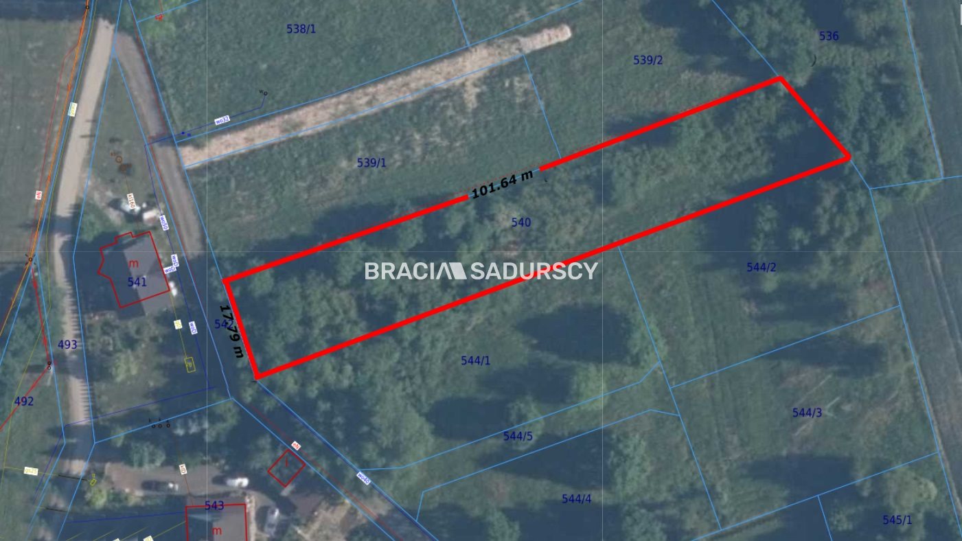 Działka budowlana o pow. 17 arów położona w miejscowości Wołowice przy ul. Wiosennej w odległości około 10 km od granicy Krakowa .