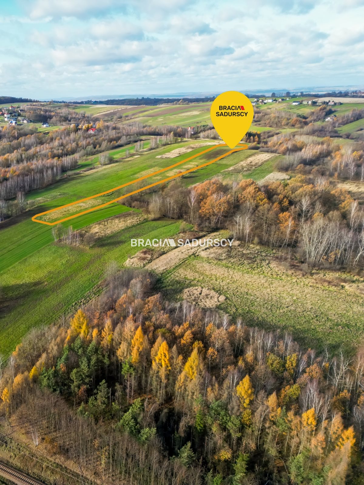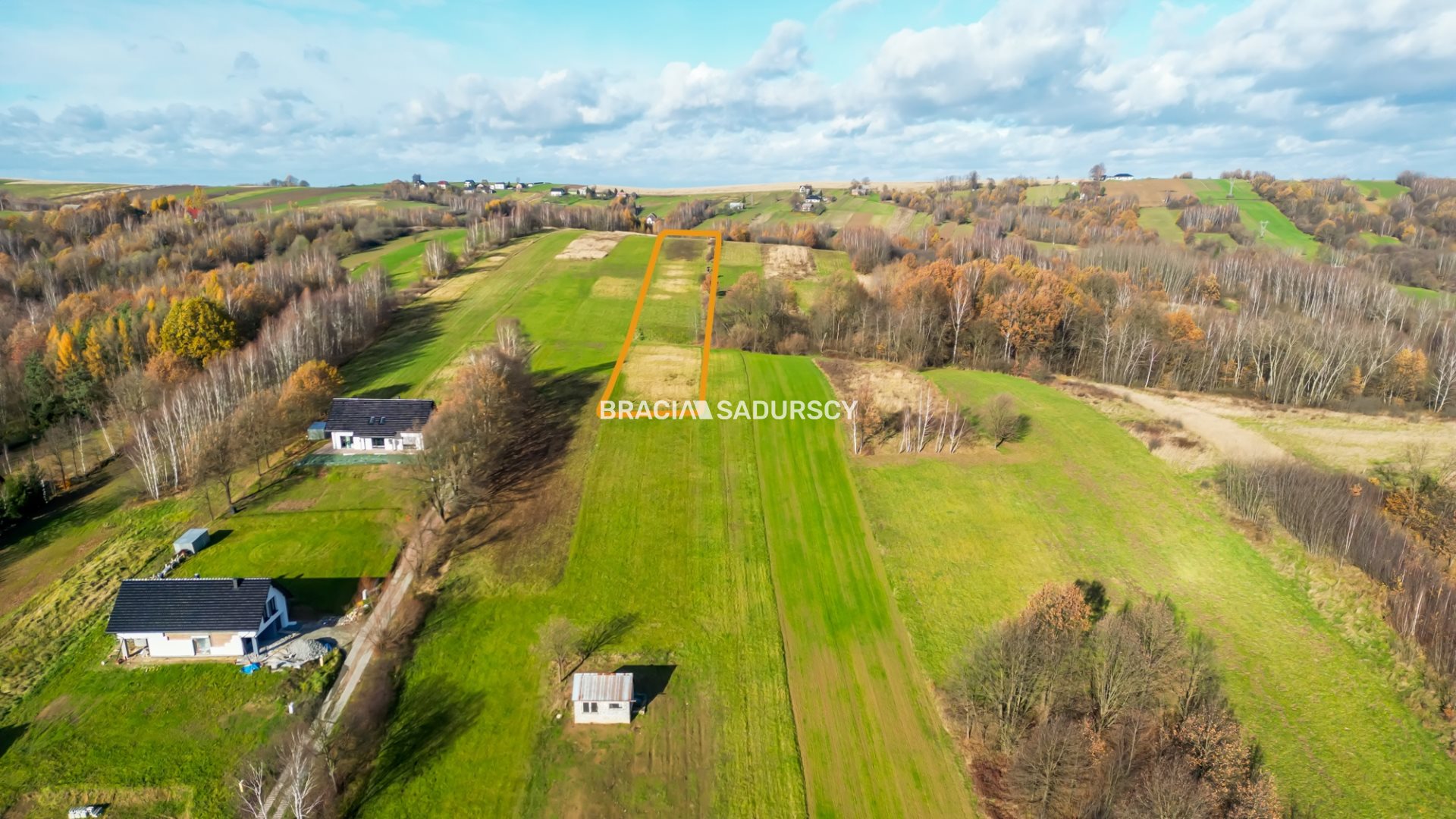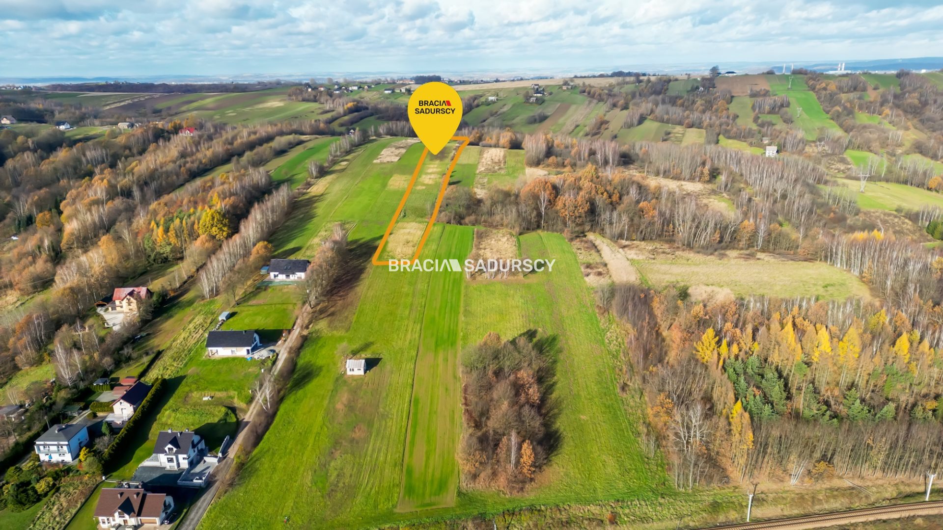 Działka budowlana o pow. 59 arów, falista, w kształcie prostokąta o wymiarach ok. 18x333 m.