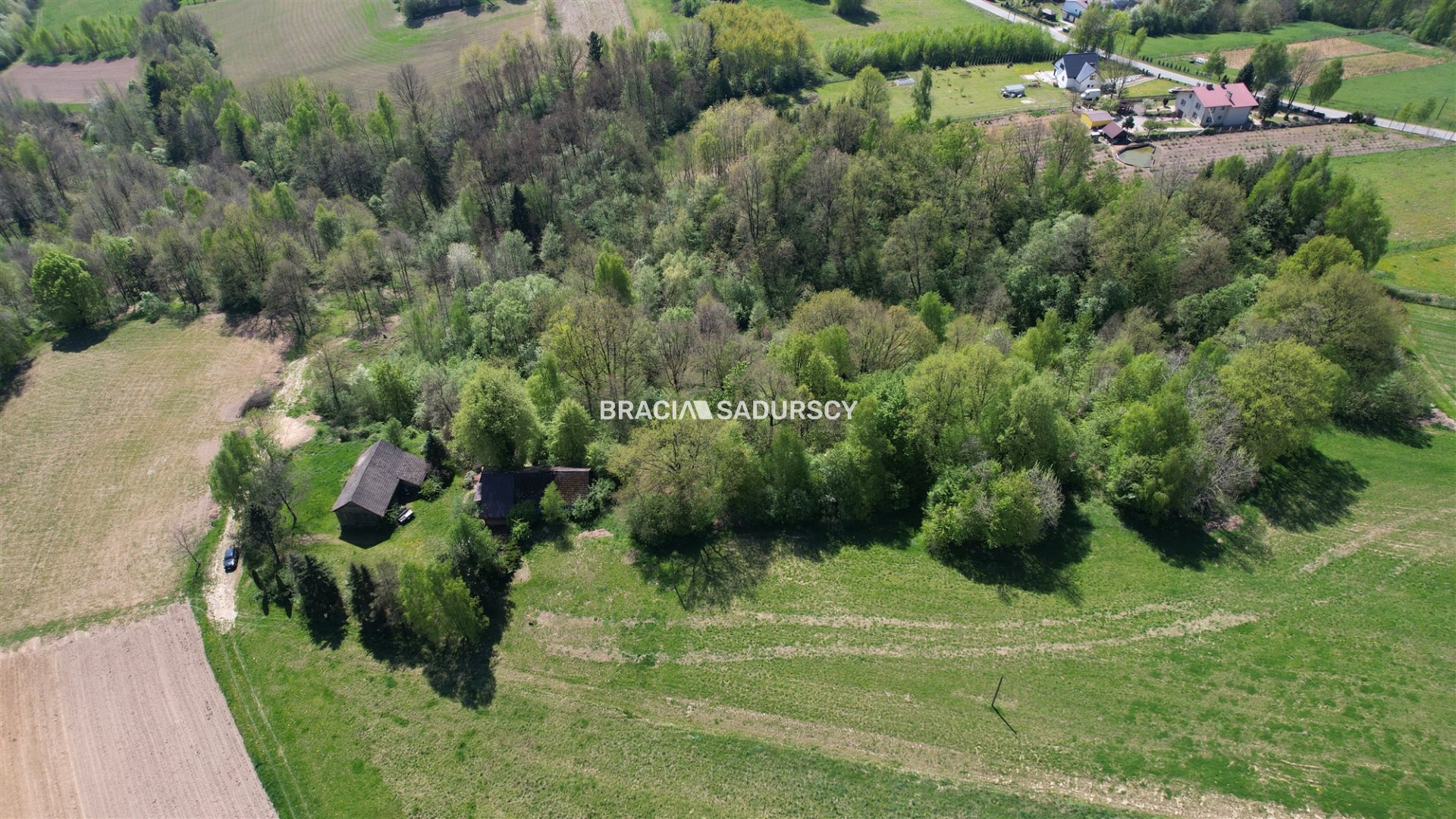 Działka rolna z drewnianym domem w Nowej Wsi, gm. Dobczyce