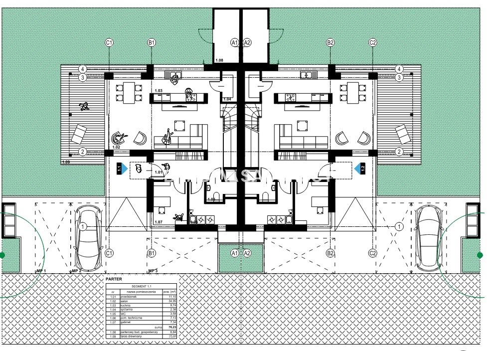 Możliwości aranżacyjne: istnieje szeroki zakres zagospodarowania terenu - możliwość stworzenia ogrodu, tarasu, strefy rekreacyjnej.