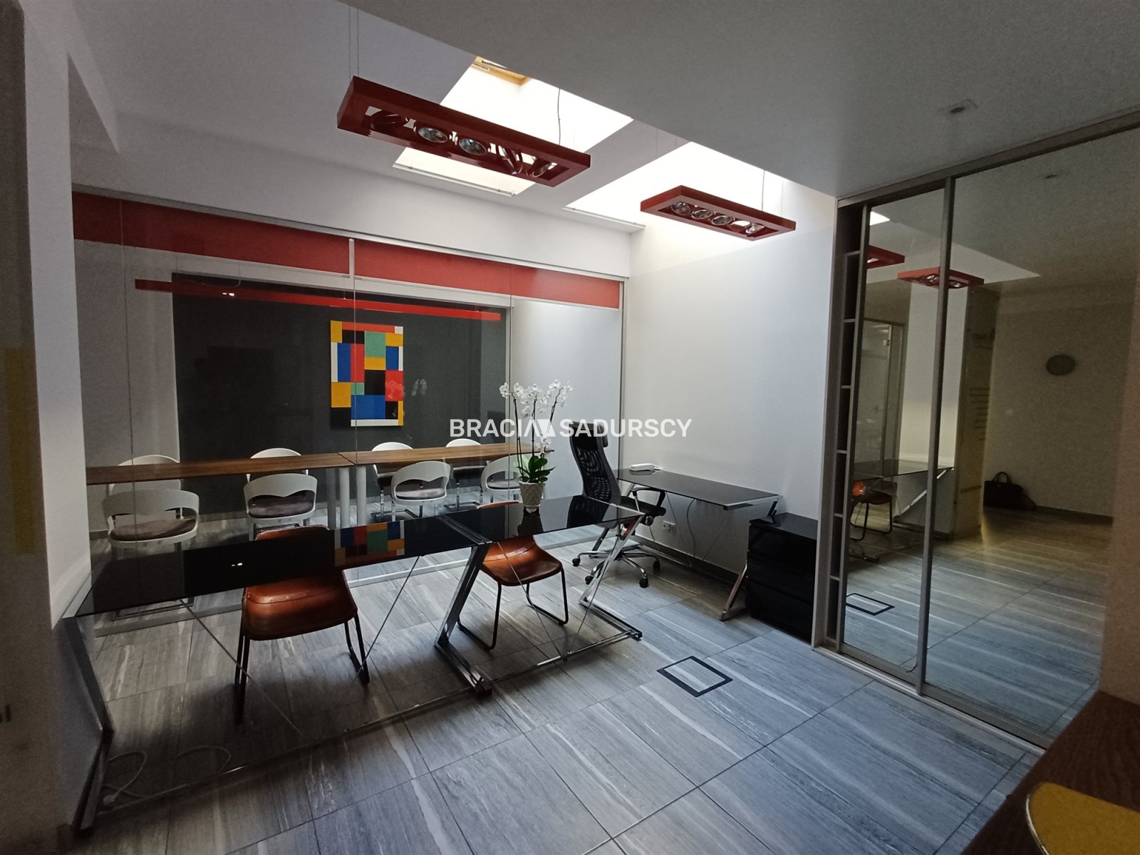 dwa oddzielne gabinety z biurkami i fotelami - jedno z biurek z funkcją podgrzewania,